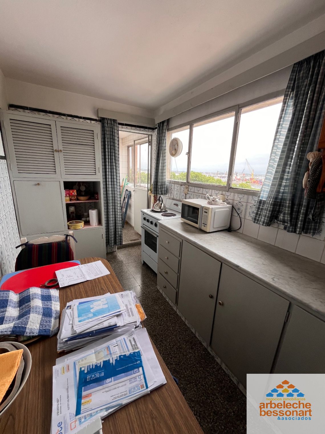 La amplia cocina con comedor diario está equipada con placares aéreos y bajo mesada, ofreciendo una vista despejada hacia la bahía de Montevideo, gracias a su orientación norte que permite una abundante sol y luz natural. El apartamento cuenta con dos acogedores dormitorios, también con pisos de parquet y buenos placares, un baño completo, y una terraza lavadero. Los gastos comunes son de $ 4.900, y el edificio es apto para crédito, lo que añade un atractivo adicional para potenciales compradores. Además, el inmueble permite mascotas y ofrece una distribución frontal que maximiza los espacios y las vistas.